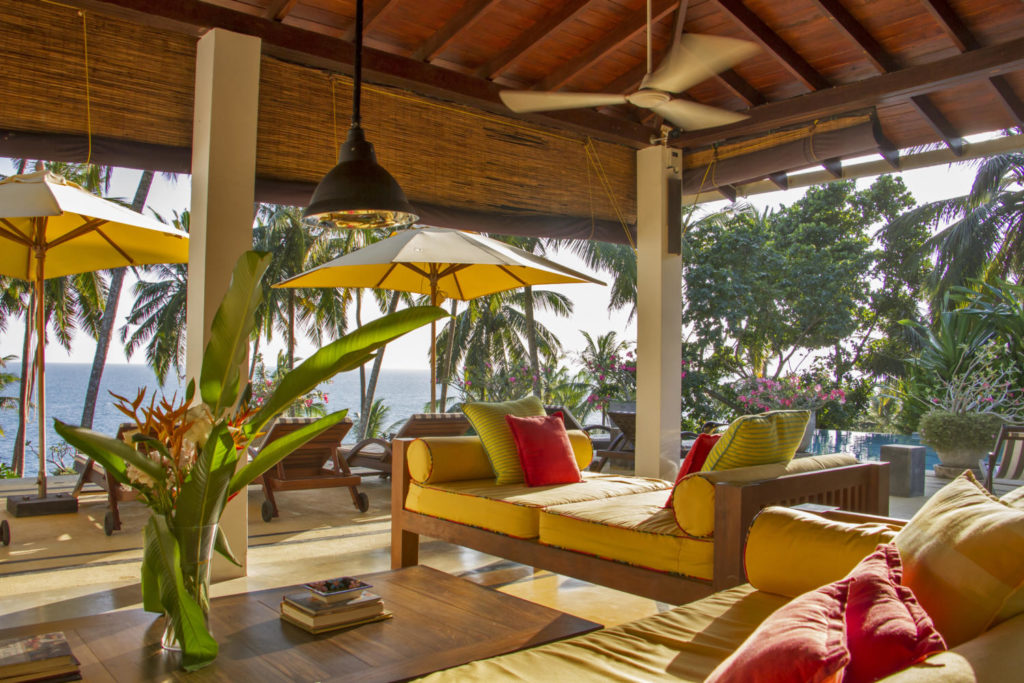 The veranda, covered dining, sitting areas and swimming pool are set around a small courtyard, with the two Master Bedrooms and Courtyard Bedroom on the other two sides. The Sea Bedroom is located much closer to the ocean, 30 metres below the swimming pool.